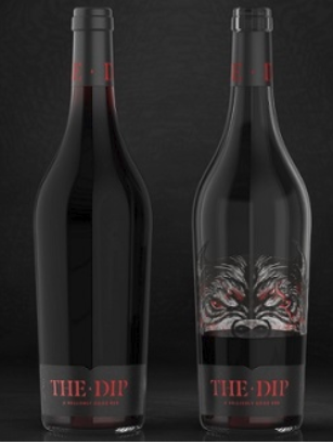 While red wines are traditionally bottled in green or dark glass, but "The Dip" comes in a transparent bottle to reveal – glass by glass – a ‘nightmarish illustration of the devil dog’ on the reverse of the back label.